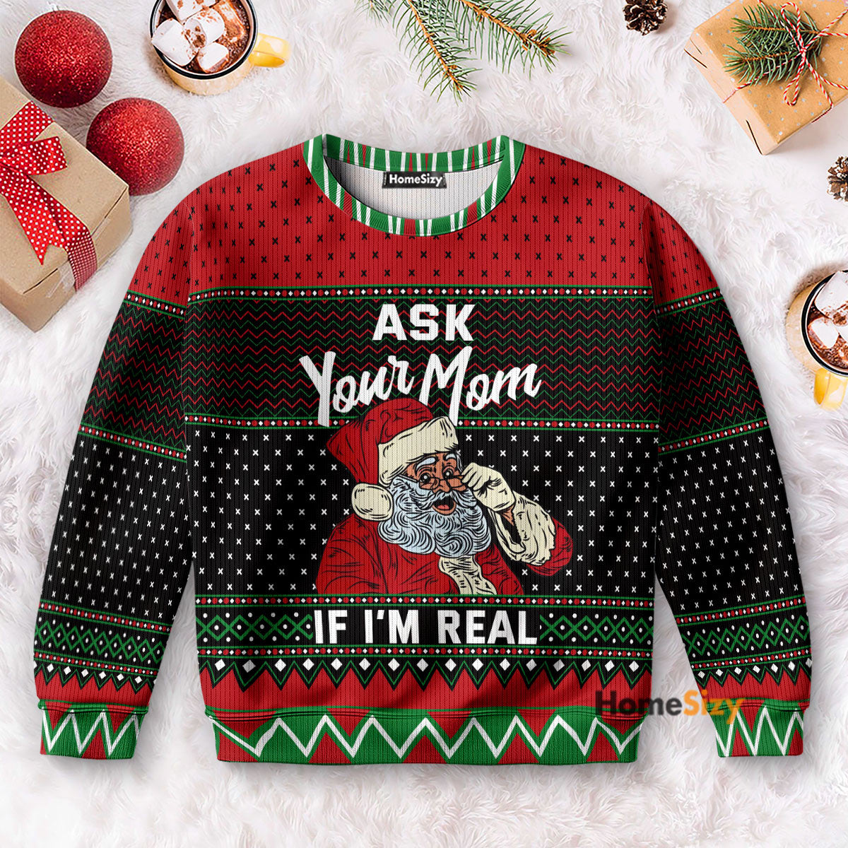 • Ask Your Mom If I'm Real Santa - Christmas Gift For Adults - 3D Ugly Christmas Sweater
