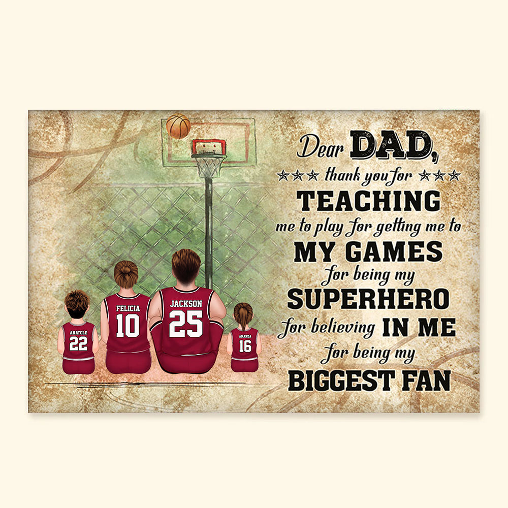 Dear Dad, Thank You For Teaching Me To Play This Game - Gift For Dad, Children, Family - Personalized Canvas Poster