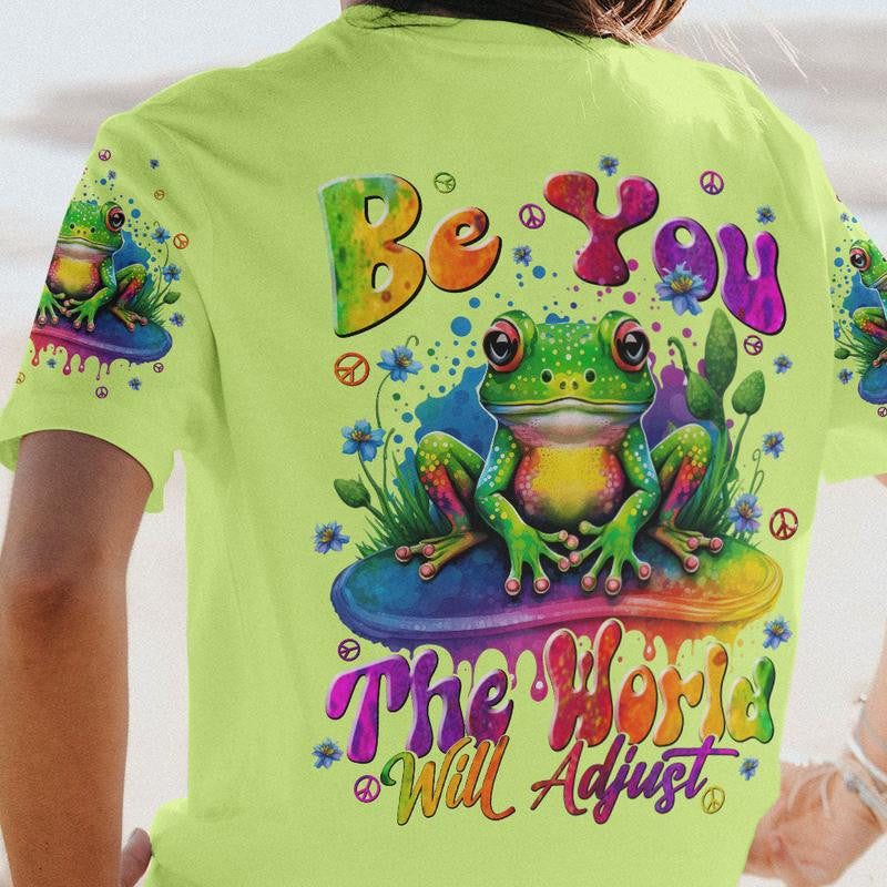 Hippie Psychedelic Frog - "Be You, The World Will Adjust" Trippy Hippie - Tshirt, V-Neck Tshirt